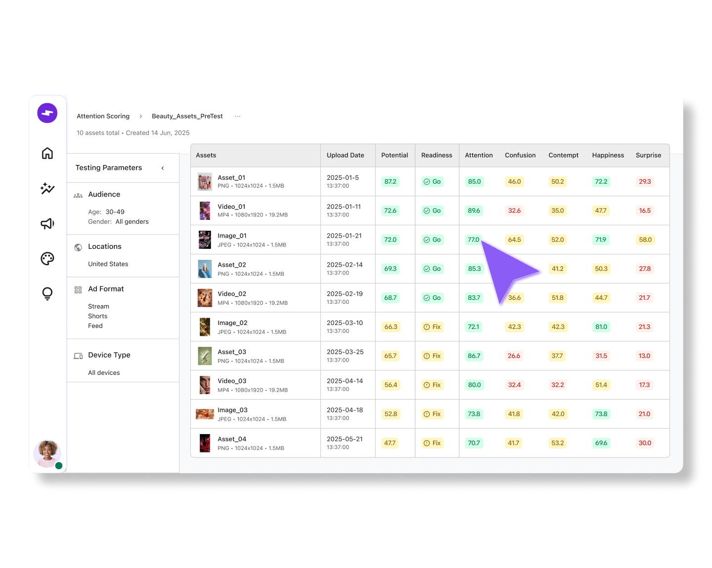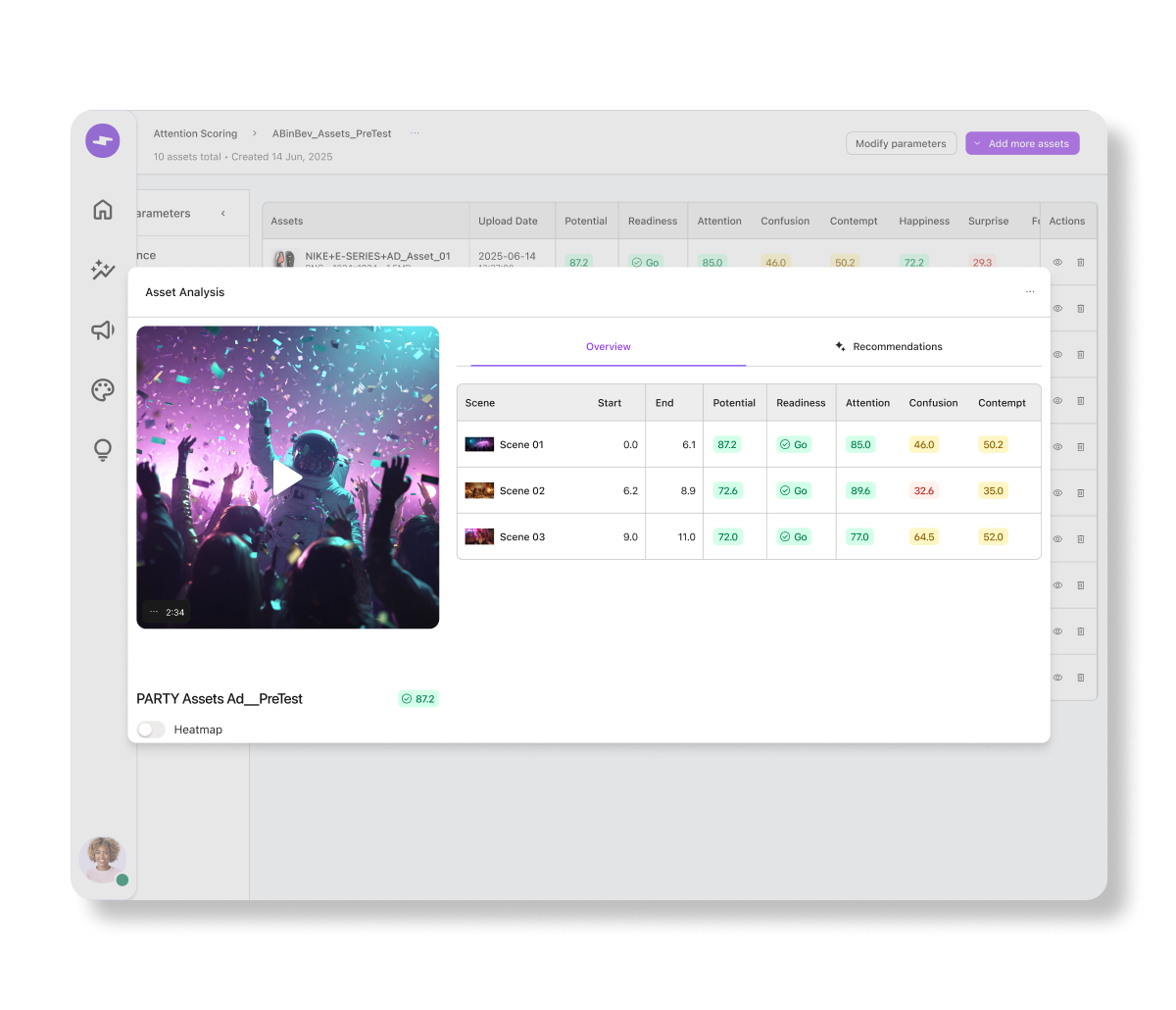 Get an instant view of each asset’s potential, complete with emotion-based scores and scene-by-scene insights, and identify what needs refinement.